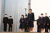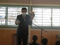 校長講話では、今年の箱根駅伝で活躍した大学を例に話がありました。創価大学監督の「タイムでなく人が走るんだ。」という言葉や強豪校である青山学院大学の監督さんを参考に多くのことを学んだこと。「学ぶ」とは「まねぶ」からはじまるというが、自分の目標としている人や得意な人のまねをすることから学んでほしい。また、最後の10区で3分差がありながら追い抜いた駒大の選手は、「最後まで諦めない」という気持ちで走った。諦めない気持ちを大切にしてほしい。次に、あいだみつをさんの「自分の番」という詩を例に、人とのつながりやその中でみんなの番だよという励ましのメッセージを送りました。