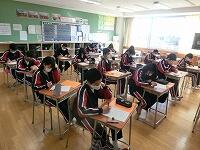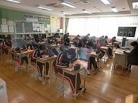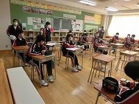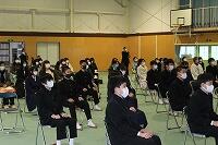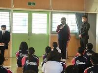 今日から3学期のスタートです。コロナ対策と寒さ対策をして、体育館で始業式を実施しました。