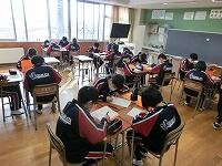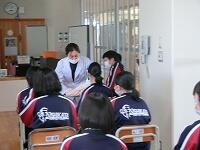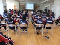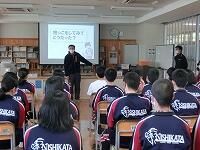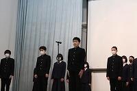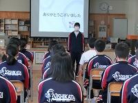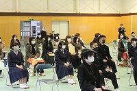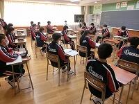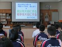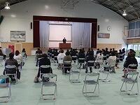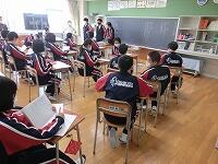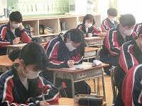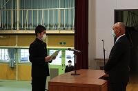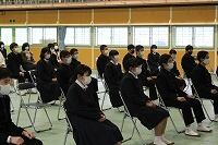 例年スキー学習を兼ねて宿泊地で実施する立志式ですが、今年はコロナウイルス感染症対策のために、スキー学習は行わず体育館で立志式を行いました。学校長や県知事からのメッセージの後、生徒1人1人の幼い頃の映像を視聴しました。そしてステージで、「誓いの言葉」を1人1人が発表しました。第2部としてプロゴルファーの崎山武志様の講演「夢を叶えるために」が行われました。