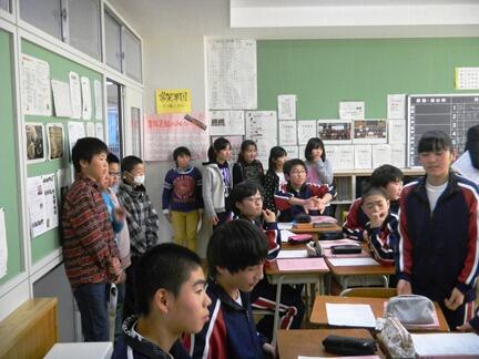 どもたちはグループごとに各教室を回り、中学生の授業を参観し、保護者は学