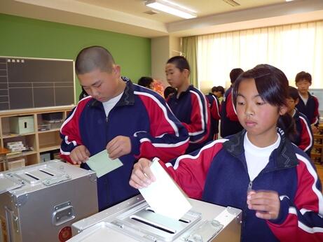 ます。既に、3年生の社会科では同題材の授業を行い、今回の選挙では、