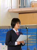▲誓いのことば(新入生代表)      ▲歓迎のことば(生徒会長)