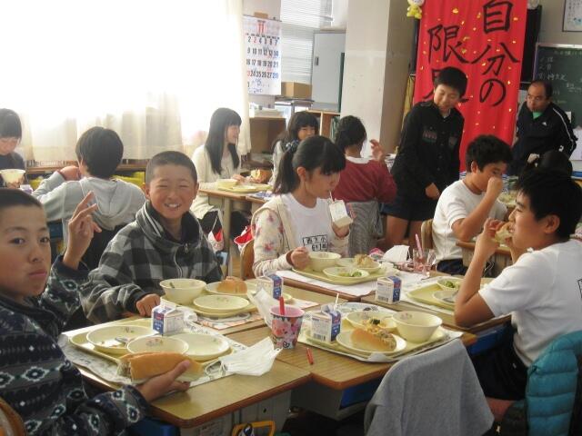 給食を共にしながら子どもたちと触れあい、また小学校の教職員と様々な