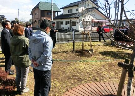 H29. 3/ 3(金) 3年生卒業記念「植樹」 投稿日時 : 2017/03/03 西方中管理者 3年生が卒業記念にと、八重桜「関山」を正門近くの植え込みに植樹しました。「飯塚造園」さんのアドバイスで、桜の種類と植樹場所を決定しました。 今は、入試や卒業式のことで頭がいっぱいかもしれませんが、成人式を迎える頃には、木も大きくなり、学舎への様々な思いとともに、感慨深く見ることになるのでしょうか。3年生と「関山」が、ともに大きく成長していくことを楽しみにしています。 {{options.likeCount}} {{options.likeCount}}