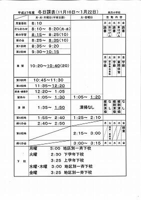 来週(11/16(月))から、冬日課が始まります。