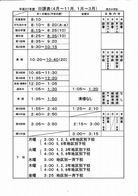 1月25日(月曜日)からは通常日課に戻りますので、お子さんの曜日ごとの下校時刻について確認置きくださいますよう、よろしくお願いいたします。