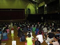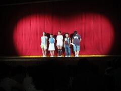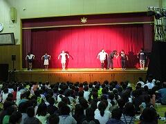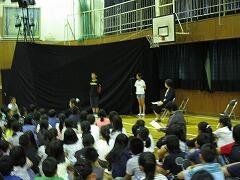 第1部は、「演劇鑑賞会」で、ガイコツ体操や腹式呼吸・滑舌について、教えていただきました。また指導していただいたことを生かし、代表者が前に出て朗読劇「花さき山のやまんば」を披露しました。
