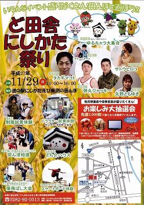11月29日(日)、学校の近くにある「道の駅にしかた」とその周辺の田んぼで午前10時~午後4時まで、「ど田舎にしかた祭り」が開かれるそうです。
