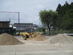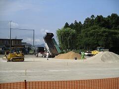 ダンプカーやホイルローダーなど、作業用車両が大活躍しています。