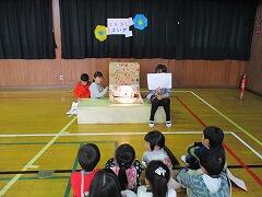 生のナレーションを聞きながら、映画のような紙芝居を観ます。
