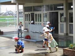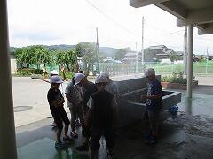 取り付けると早速、子ども達が集まってきて、涼を取る姿が見られました。