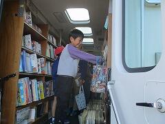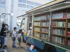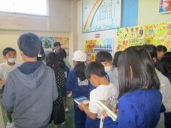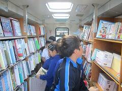 教員が声をかけなくても業間になると、たくさんの子ども達が「今日は、移動図書館だあ」と昇降口に集まってきます。
