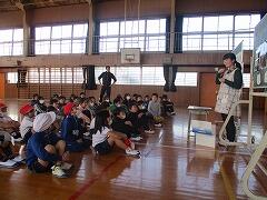 まず、冬休み中の食事について、栄養教諭から話がありました。休み中は栄養が偏りがちなことから、成長期にある小学生は特に「牛乳を飲んで、カルシウムをとろう」という指導でした。また、大豆製品や小松菜などにもカルシウムは多く含まれているそうです。積極的に食べるようにしてみてください。