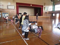 最後に、体育主任から、冬休みも身体を動かそう、腕の筋力も付けよう、という話があり、友だちと組みになって「手押し車」を体験しました。手押し車が難しければ、身体をだらんと伸ばして、両腕で支えて歩く「あざらし歩き」でも良いと思います。ぜひ続けてみてください。