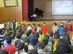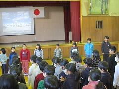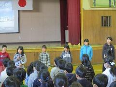 始業式では、各学級2名ずつの代表児童が、「新年・3学期の目標」を発表してくれました。原稿を見ずに話す子や、マイクを使わずに言える子などもおり、18名それぞれが堂々と自分の目標を発表してくれました。