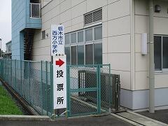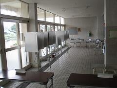 本校も投票所となるため、児童が下校した後に市役所職員が来校し、昇降口周辺で設営の準備をしていました。