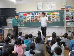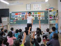 単元名は「Let's go to Itary.」で、5時間のうちの2時間目である今日は、いろいろな国の国旗や食べ物・有名な建物・文化などについて、キーワードゲーム・ミッシングゲーム・チェンジゲームなどのゲームを通じて、楽しみながら理解を深めました。