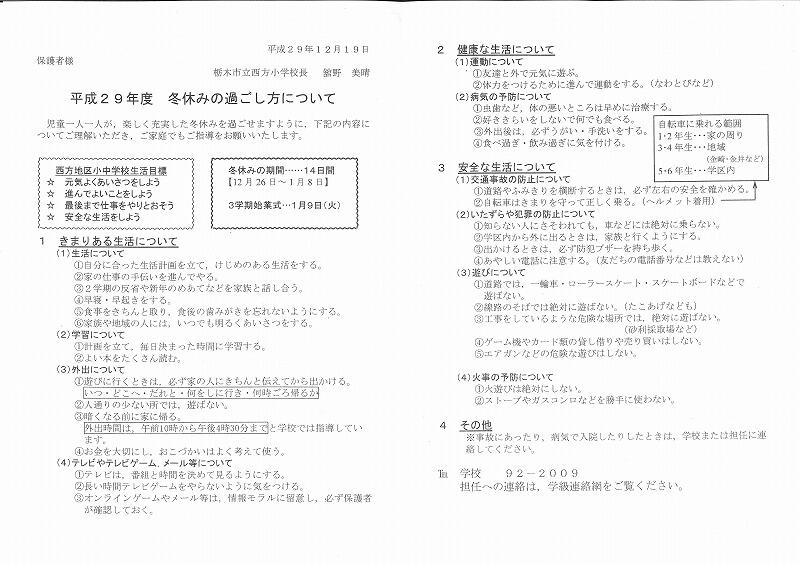 子どもたちにとっては、年末年始を含む14日間の楽しい冬休みです。お子さんが安全・健康に過ごせるよう、ご家庭でのご指導をお願いします。