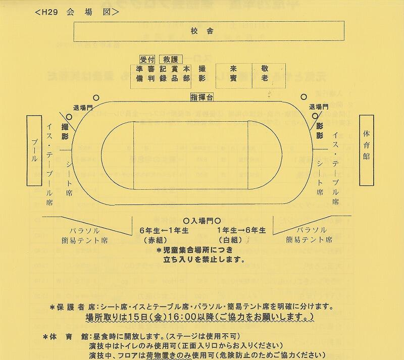 また、保護者応援席の場所取りは、今年度は15日(金曜日)午後4時以降となっています。多くの皆様が気持ちよく応援・参観できるように譲り合って場所取りしていただきますよう、ご協力をお願いします。
