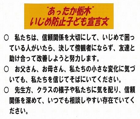 あったか栃木いじめ防止子どもフォーラム宣言文.pdf (PDF版)もいじめ防止対策のコーナーにアップしました。(クリックすると、別画面で開きます)