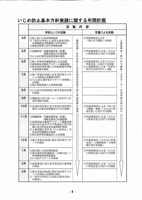 本校では、「いじめ」はもちろんのこと、「いじめにつながるようなからかい」についても、教職員の指導だけでなく、児童同士でもお互いに注意し、止め合えるような雰囲気作りに努めています。