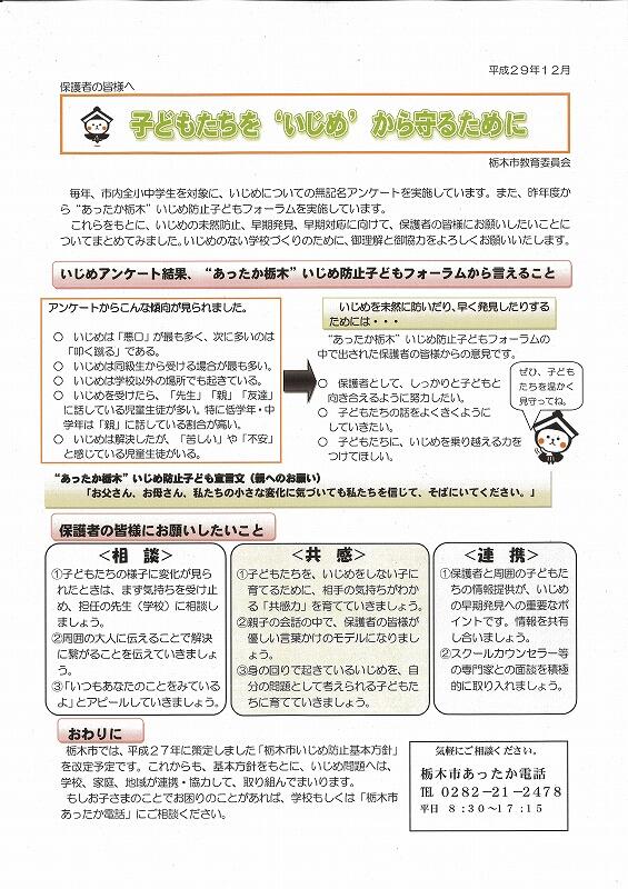 また、今回はそれらの結果や成果に基づき、栃木市教育委員会から「保護者の皆様にお願いしたいこと」のパンフレットが、お子さんを通じて配布されました。