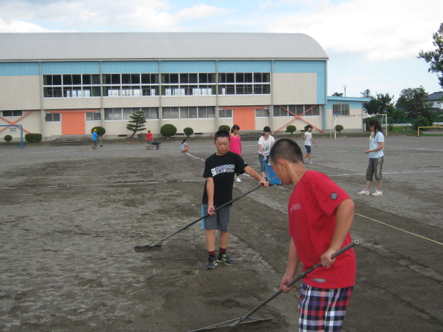 校庭整備をしています。