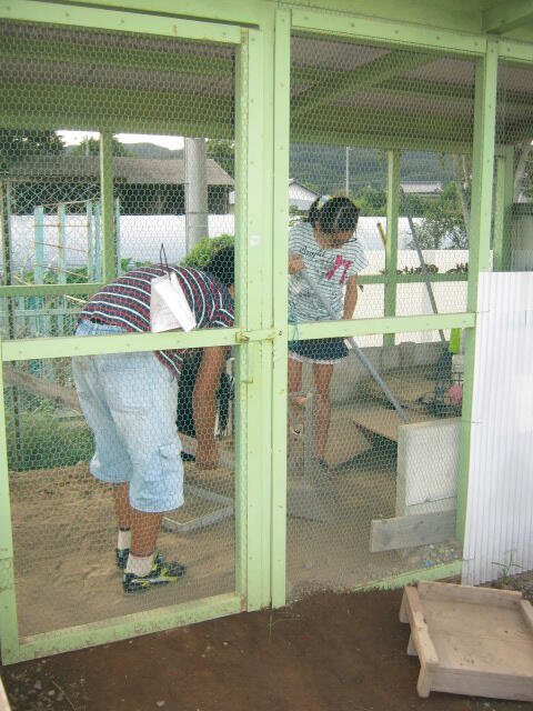 ②飼育委員会の児童が、ウサギ小屋の