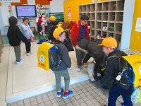 ハンカチがある児童は口元を覆いながら、家庭科室から遠い昇降口や非常階段、教室ベランダ等から校庭へ出ていました期待・ワクワク