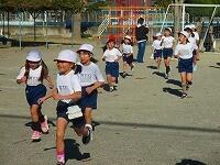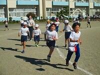走っている途中で急に歩いてしまう子がいるので、周りの教員が体調を見つつ声をかけています。