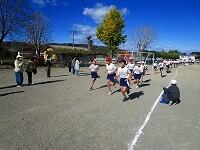 風が肌寒さを感じさせ、太陽が暖かさを取り戻してくれる微妙な陽気の中、下学年(1~3年生)が走りました