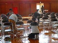 1~3年生は、多目的室で、お別れ式の予行をしました