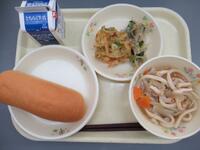 減量ミルクパン 牛乳 野菜のかき揚げ 煮込みうどん 梅和え