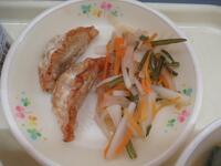 ごはん 牛乳 揚げ餃子 大根と茎わかめのサラダ 具だくさん味噌汁