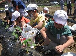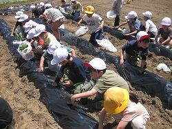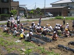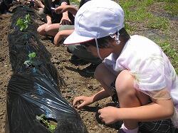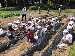 ポットからの出し方や畝での植えこみ方など、丁寧にご説明いただいたので、あっという間に植え終わりました笑う