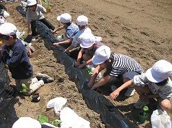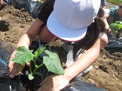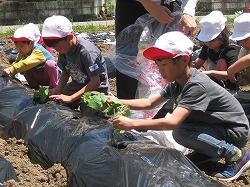 星とてもよく晴れたので、2年生が畑に野菜苗を植えましたキラキラ
