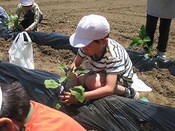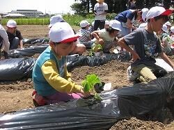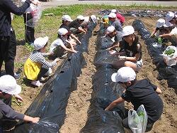 お知らせ地域のボランティア様と本校技能員さんにお手伝いいただきながら、野菜苗を植えました期待・ワクワク