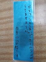 お知らせ生活科の町探検で「道の駅にしかた」を見学したご縁で、道の駅から七夕の短冊を書く依頼があり、花丸”学校から地域へ”お返しできるものがあればと、2年生が書かせていただきました笑う