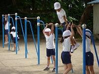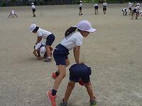 スポーツテスト結果で苦手としている「投げる運動」の強化や馬跳びも継続して取り組んでいます。