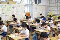 朝の学習の時間に、学年ごとに、校歌の練習をしています。
