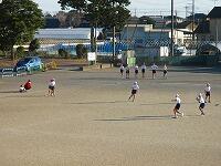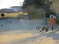 3年生の体育は、持久走の練習です。青空の下、白砂の校庭を走っていました。