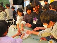 小さい学年の子たちにも分かるように、ルビを振ったり、絵を描いたりするとともに、実際に触らせてあげて興味を持ってもらう工夫もしていました。