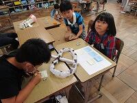 9月から、おもちゃ作りを始め、輪ゴムの数を変えたり、切り込みの深さを変えたりするなど、子どもたちは話し合いながら取り組んできました。