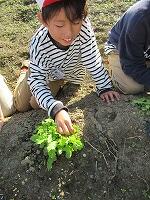 イベント2年生も農園で、大根の間引きをしていましたにっこり