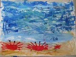 「手でカニを作ったの。すご~い。」