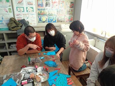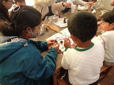 雪だるまやクリスマスツリーなど、季節に合わせた飾りを作っていました