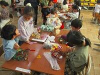 1年生は、あさがおとさつまいものつるで作ったリースに、飾り付けをして楽しみました