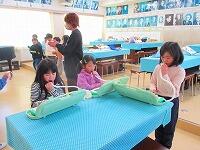 返し縫いや直線縫い、上糸のかけ方など友達と教え合いながら、楽しく活動できました