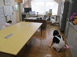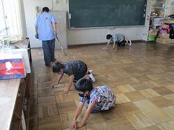 奉仕的行事の一環として、特別教室と6-1教室のワックスがけを行いました。