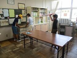 一晩乾かし、明日の登校後に荷物を教室内に戻して作業完了です。
